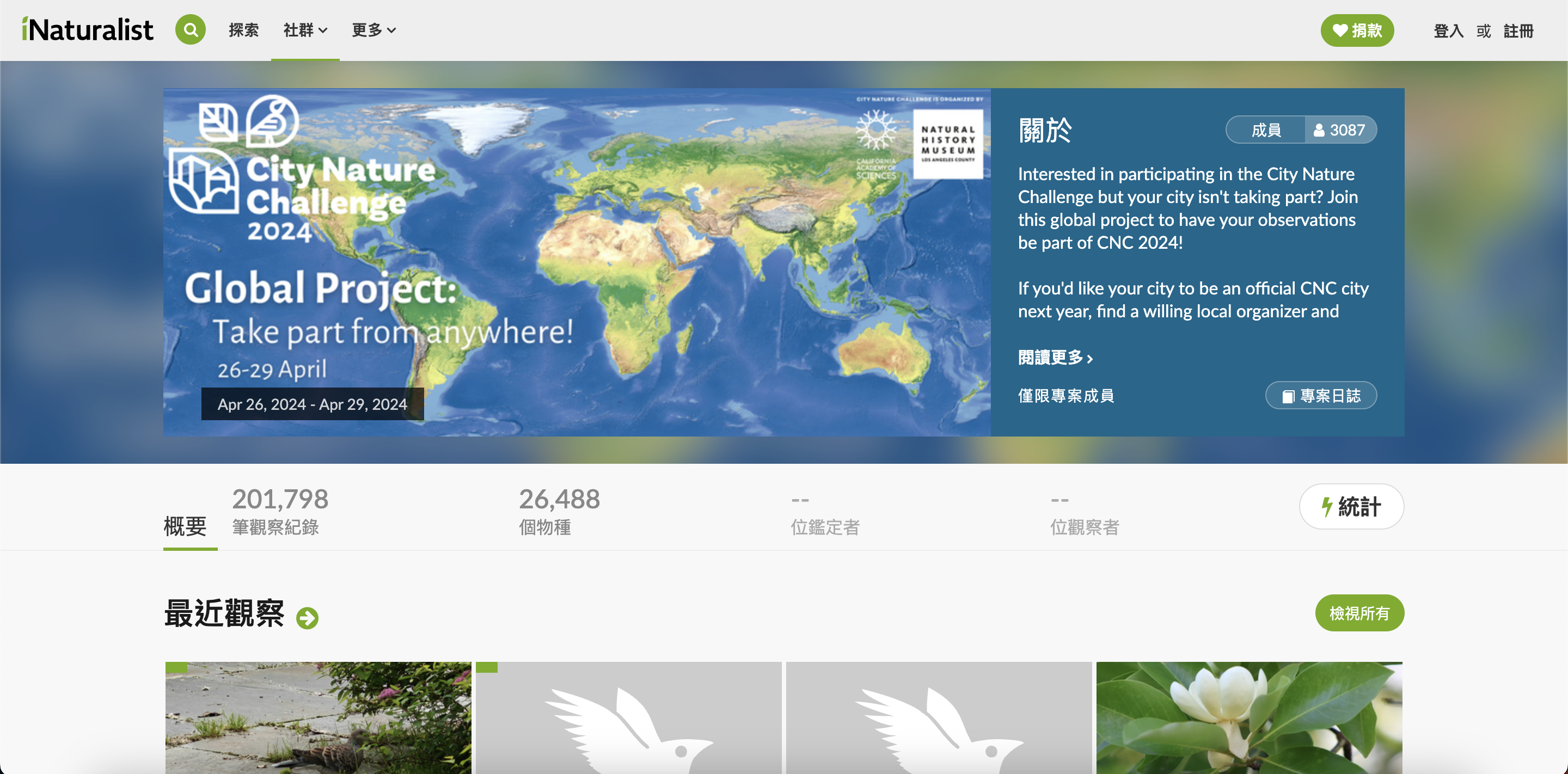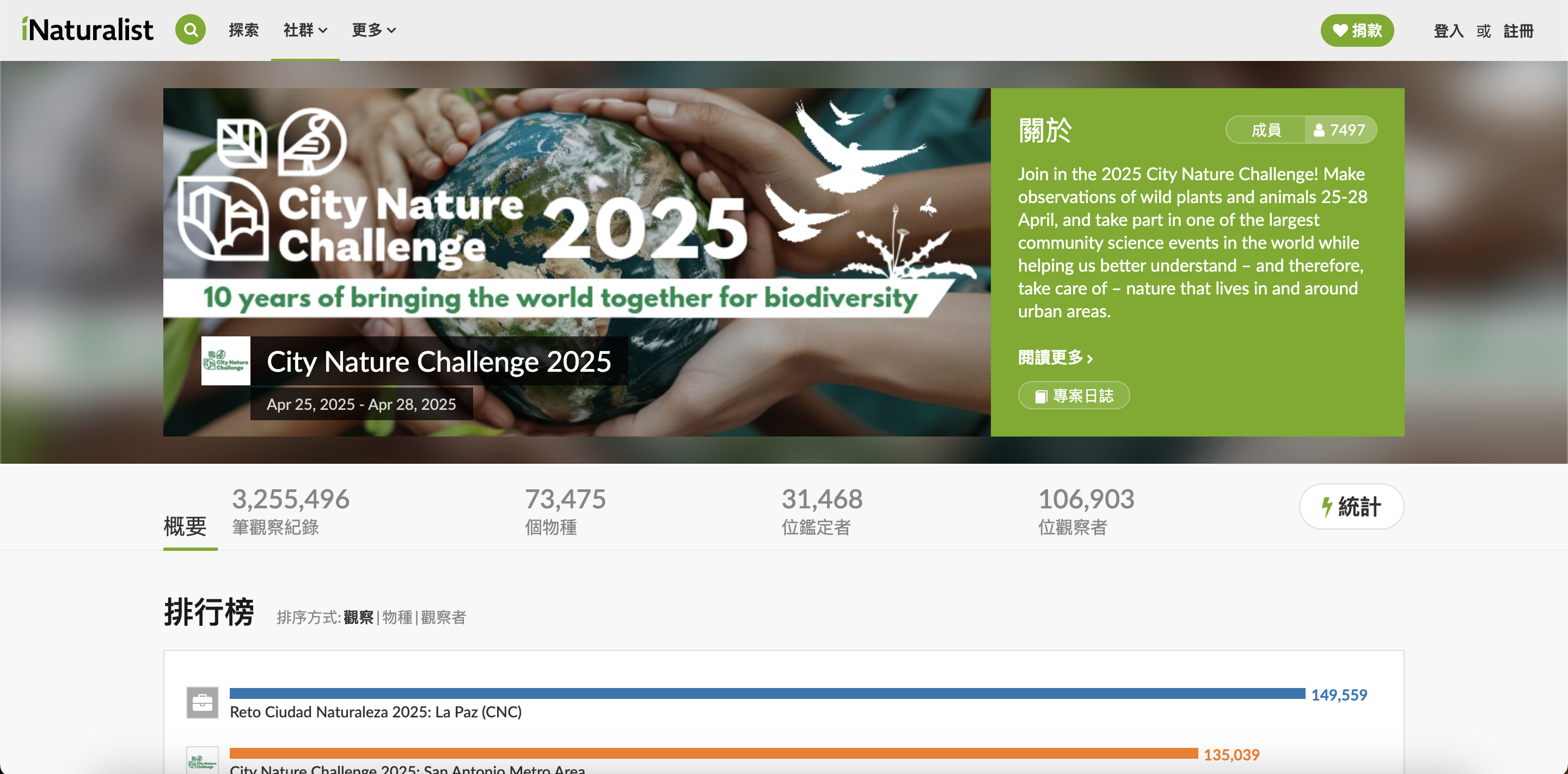 本屆賽事在 iNaturalist 上的專案頁面,可即時瀏覽觀測數量與物種統計。