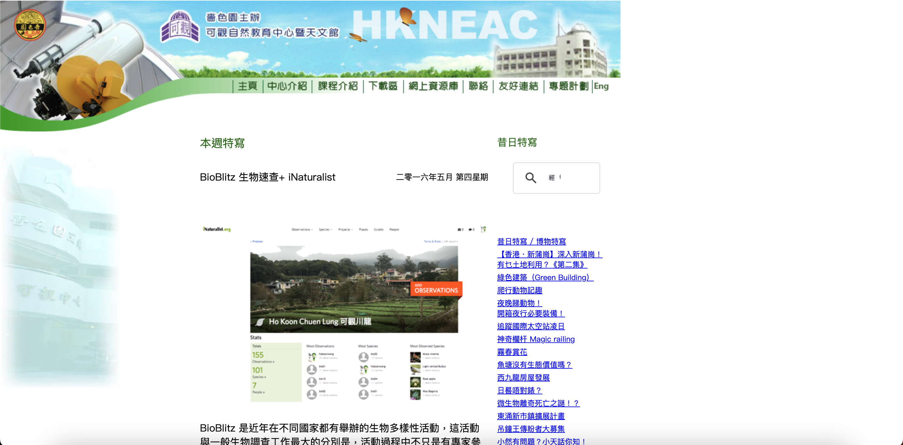 iNaturalist 上的教學與活動紀錄專案,可作為觀測與活動設計參考。